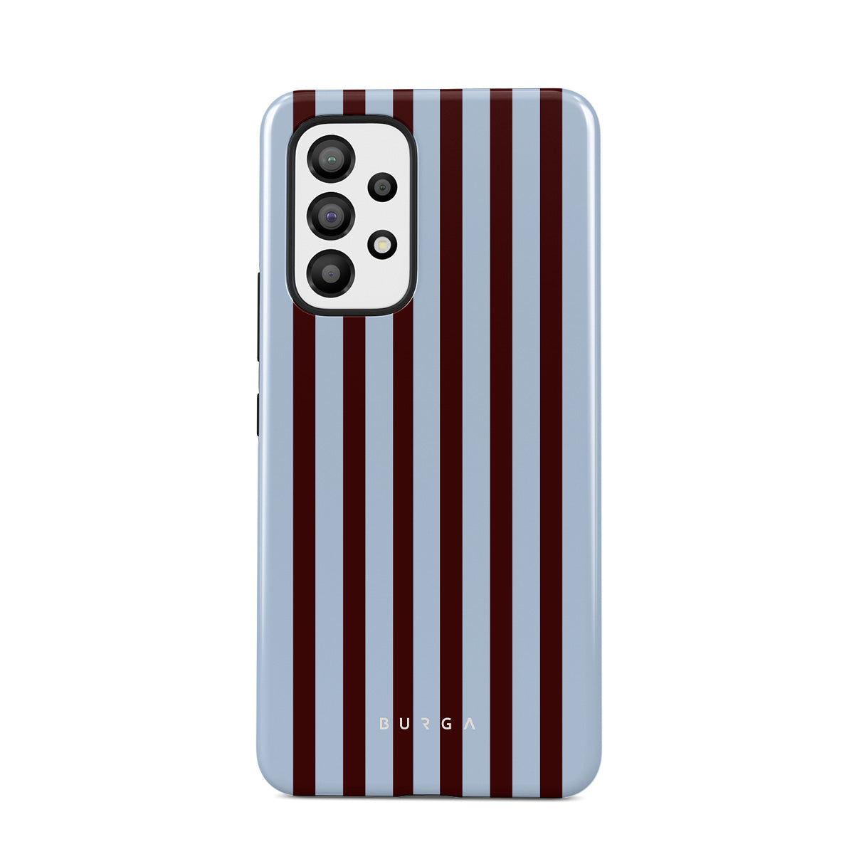 Brown, blue, and emotionally unavailable. This striped Samsung Galaxy A33 phone case design says, “I turned off my Slack notifications and found inner peace.” Or at least a cute aesthetic.
