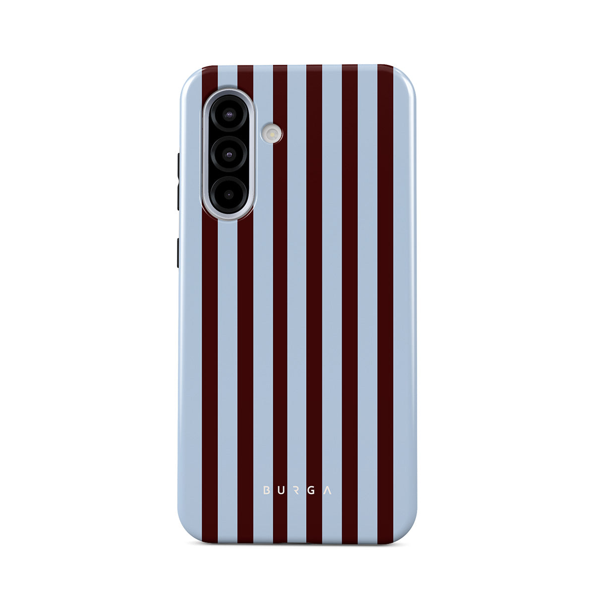 Brown, blue, and emotionally unavailable. This striped Samsung Galaxy A36 5G phone case design says, “I turned off my Slack notifications and found inner peace.” Or at least a cute aesthetic.