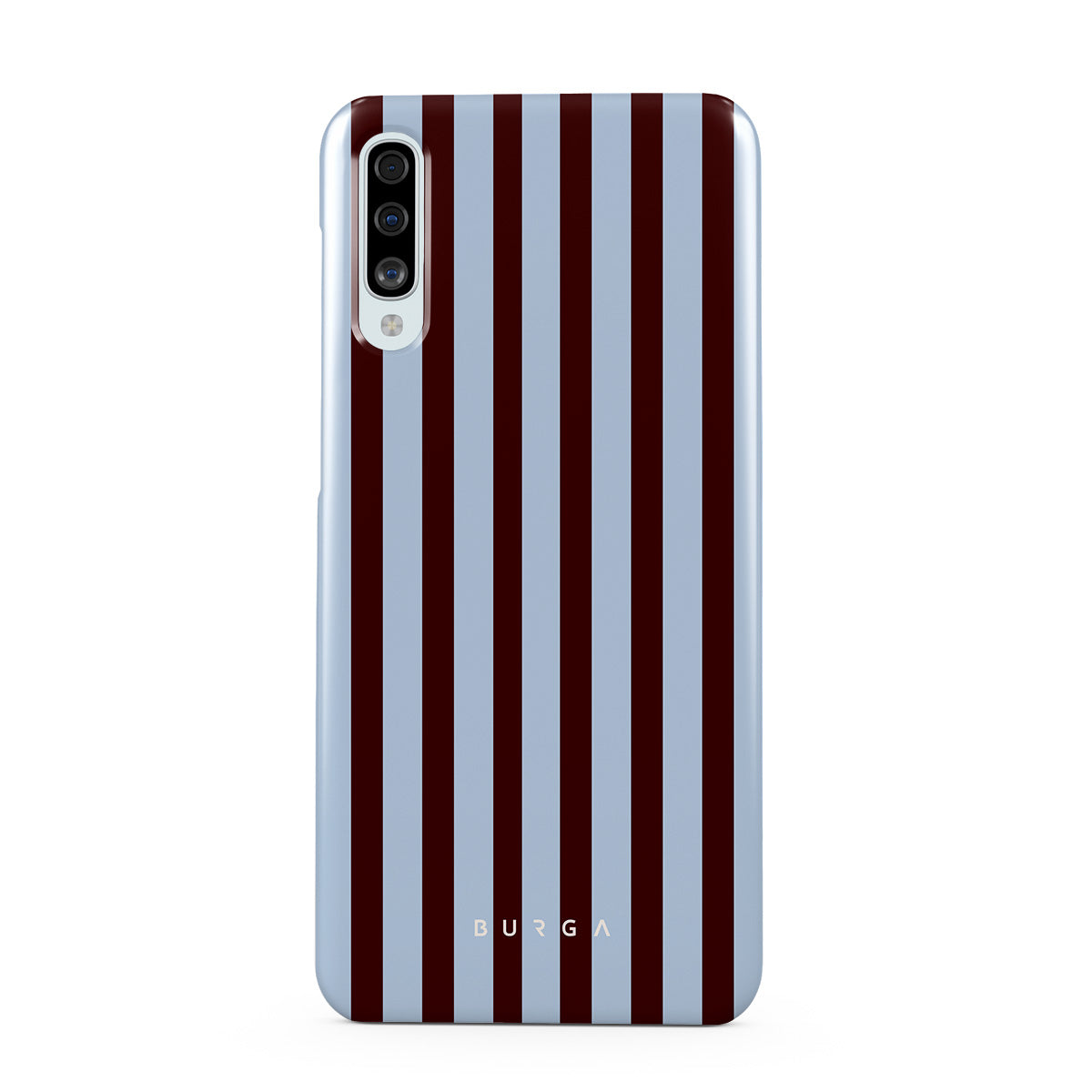 Brown, blue, and emotionally unavailable. This striped Samsung Galaxy A50 phone case design says, “I turned off my Slack notifications and found inner peace.” Or at least a cute aesthetic.