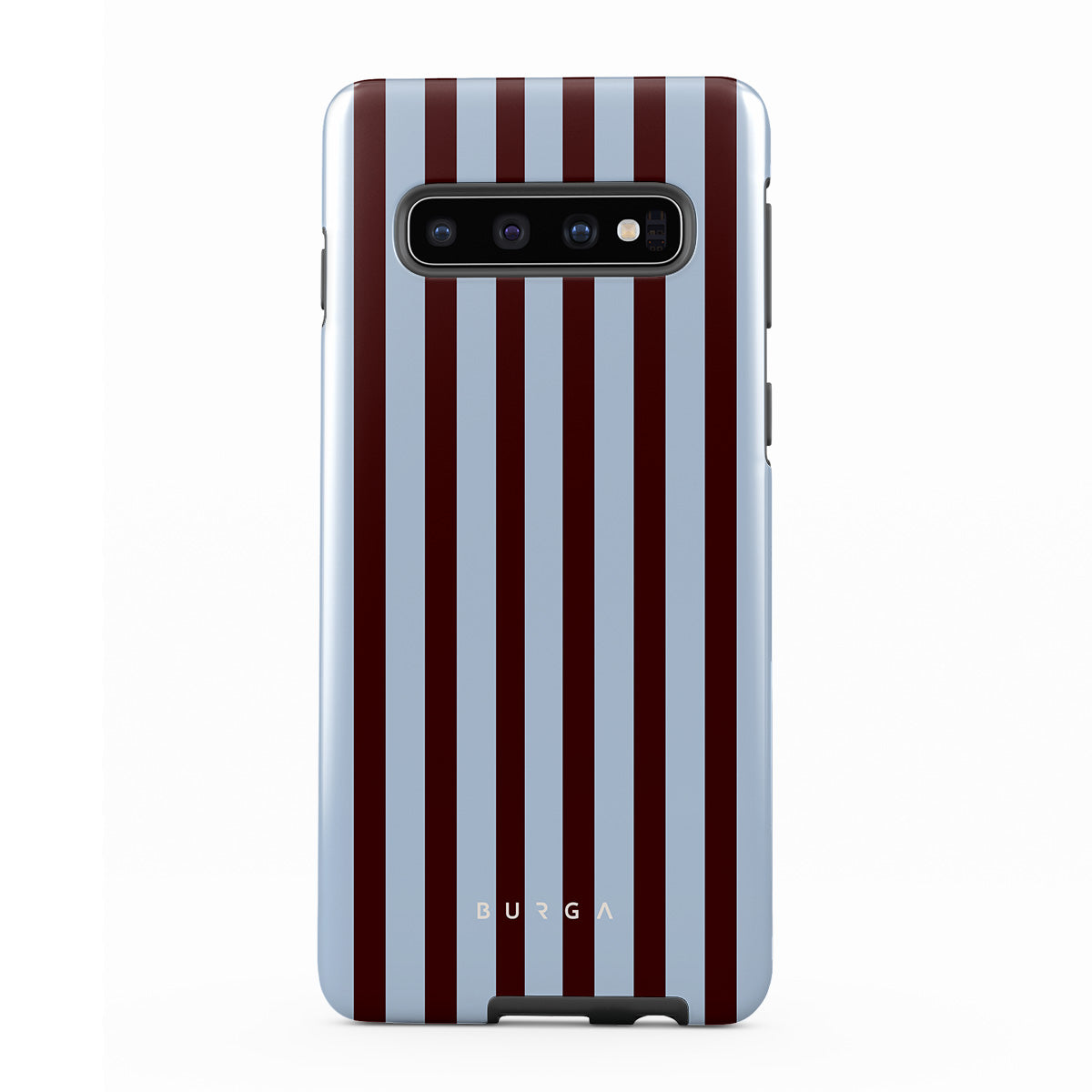Brown, blue, and emotionally unavailable. This striped Samsung Galaxy S10 4G phone case design says, “I turned off my Slack notifications and found inner peace.” Or at least a cute aesthetic.