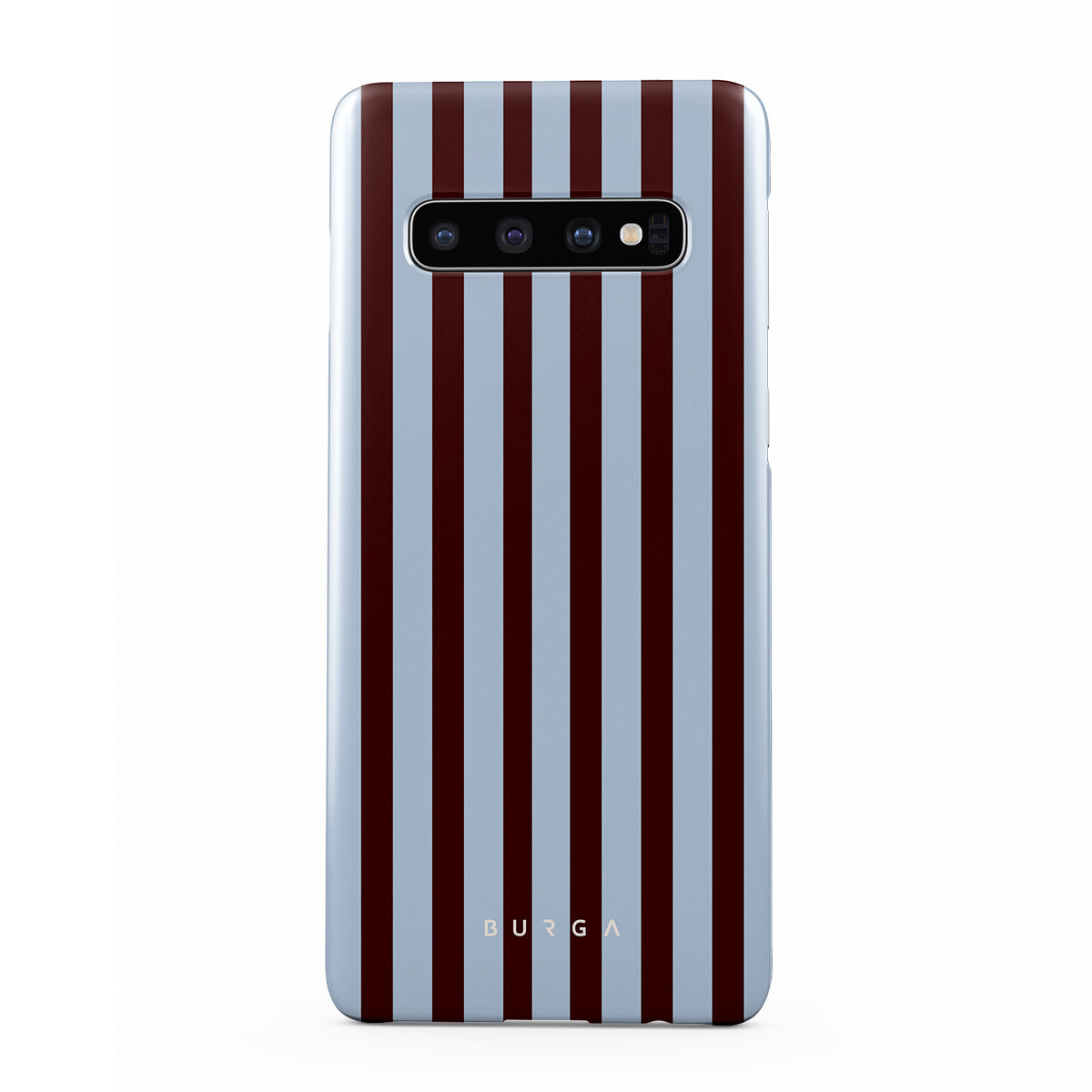 Brown, blue, and emotionally unavailable. This striped Samsung Galaxy S10 Plus phone case design says, “I turned off my Slack notifications and found inner peace.” Or at least a cute aesthetic.
