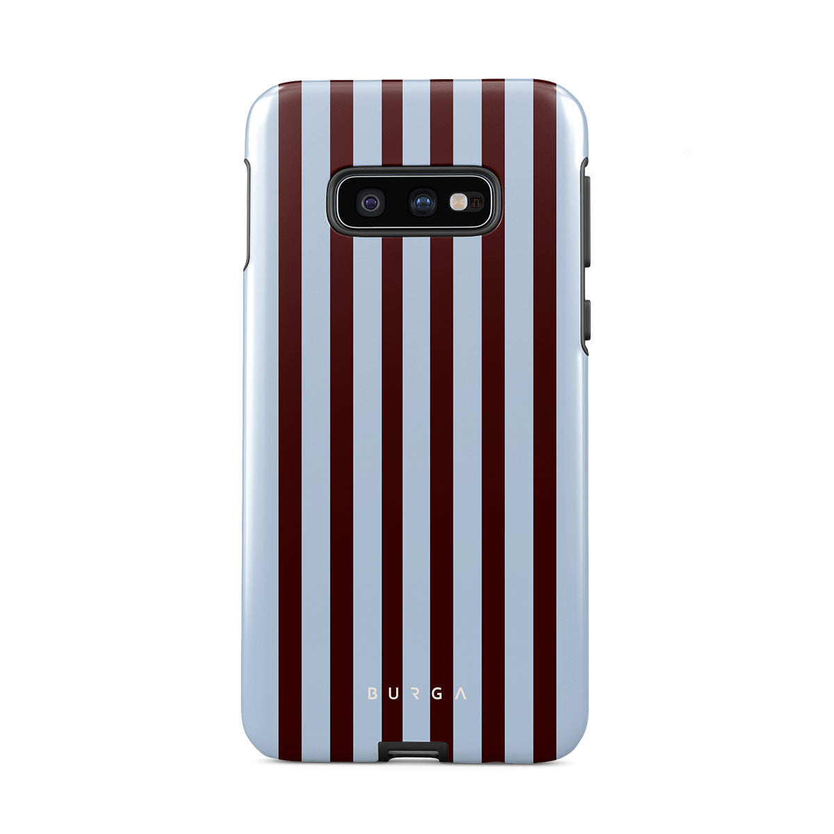 Brown, blue, and emotionally unavailable. This striped Samsung Galaxy S10E phone case design says, “I turned off my Slack notifications and found inner peace.” Or at least a cute aesthetic.