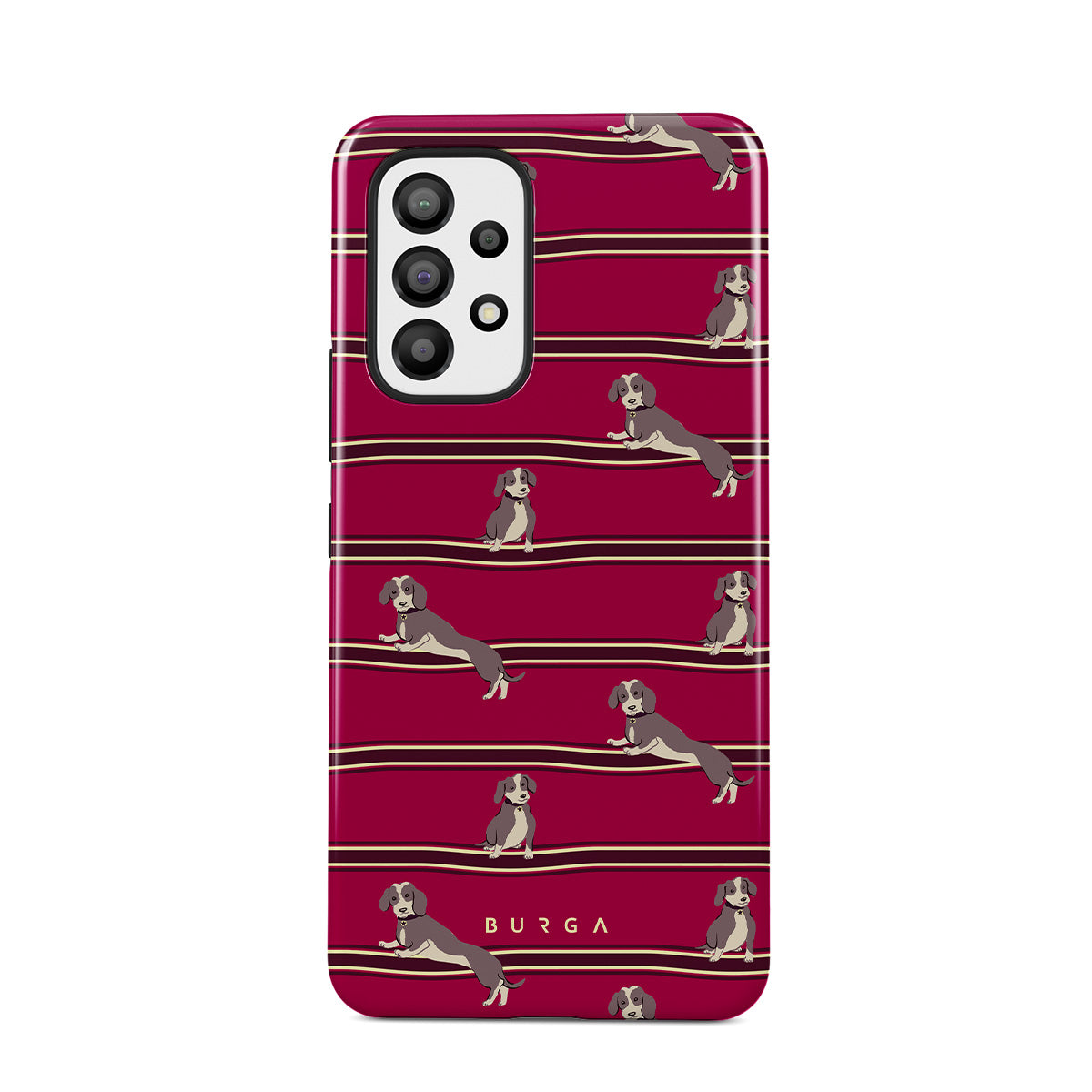 This Samsung Galaxy A33 phone case design is what it feels like to wait for your promotion while your boss reposts hustle quotes on LinkedIn. And yes, these doggos are judging your life choices.