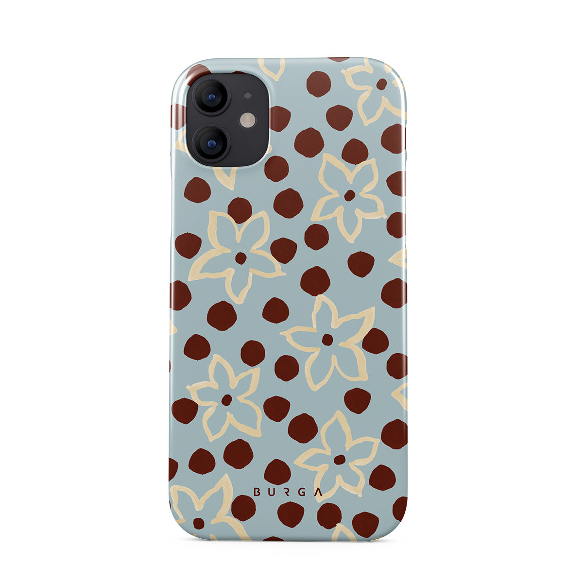 The Frutaria iPhone 12 Mini phone case design design: retro surf motel wallpaper meets vintage ceramics. The soft florals, earthy dots, and cool-toned palette give major “forgotten seaside town in the ‘70s” energy.