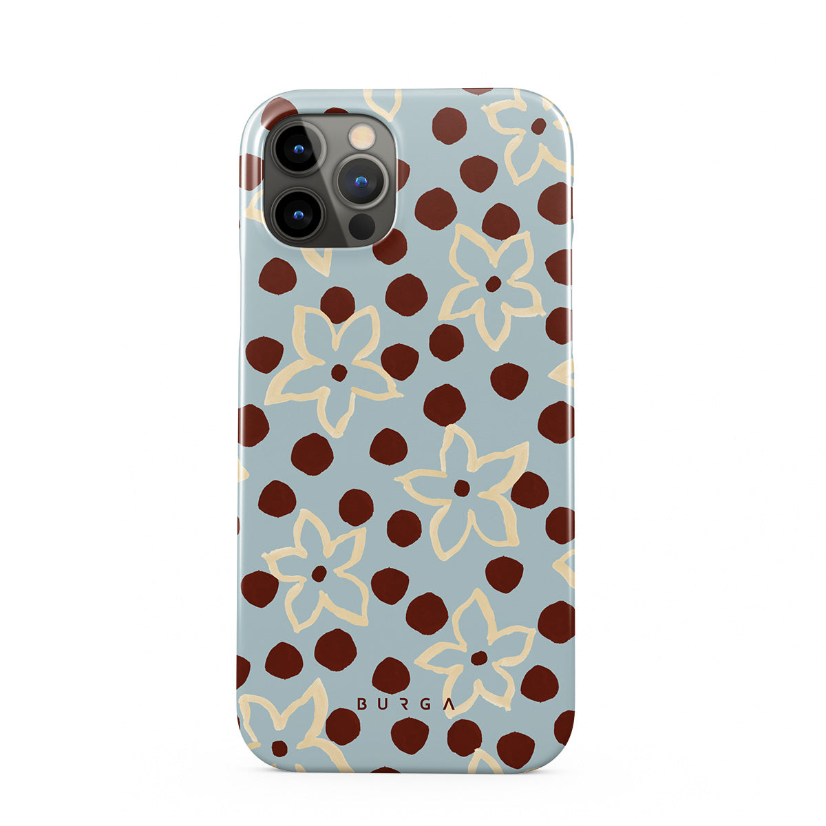 The Frutaria iPhone 12 Pro Max phone case design design: retro surf motel wallpaper meets vintage ceramics. The soft florals, earthy dots, and cool-toned palette give major “forgotten seaside town in the ‘70s” energy.
