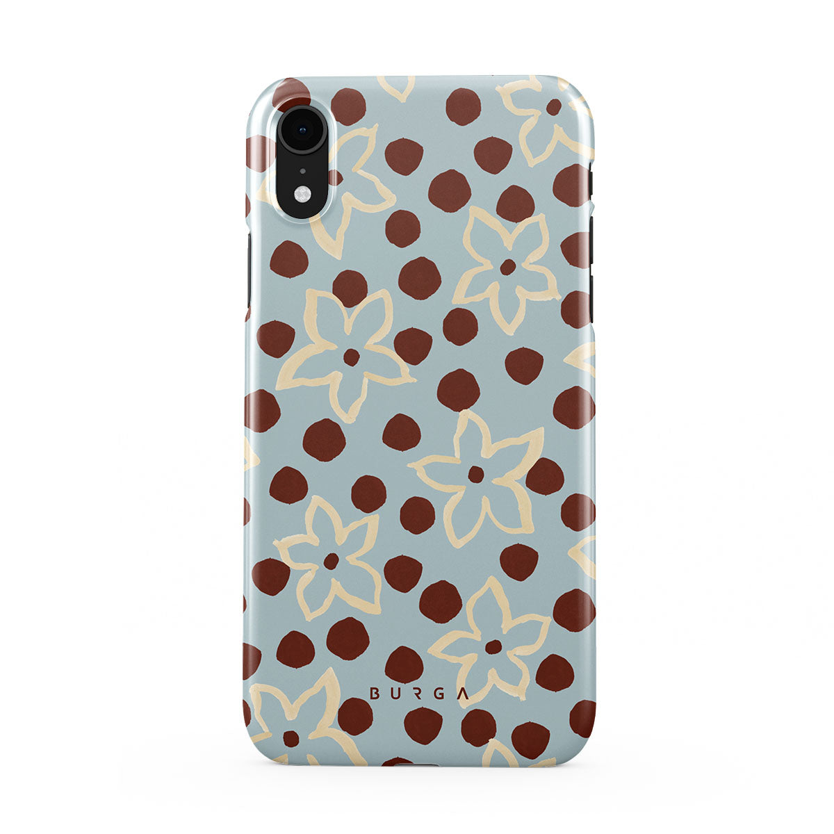 The Frutaria iPhone XR phone case design design: retro surf motel wallpaper meets vintage ceramics. The soft florals, earthy dots, and cool-toned palette give major “forgotten seaside town in the ‘70s” energy.