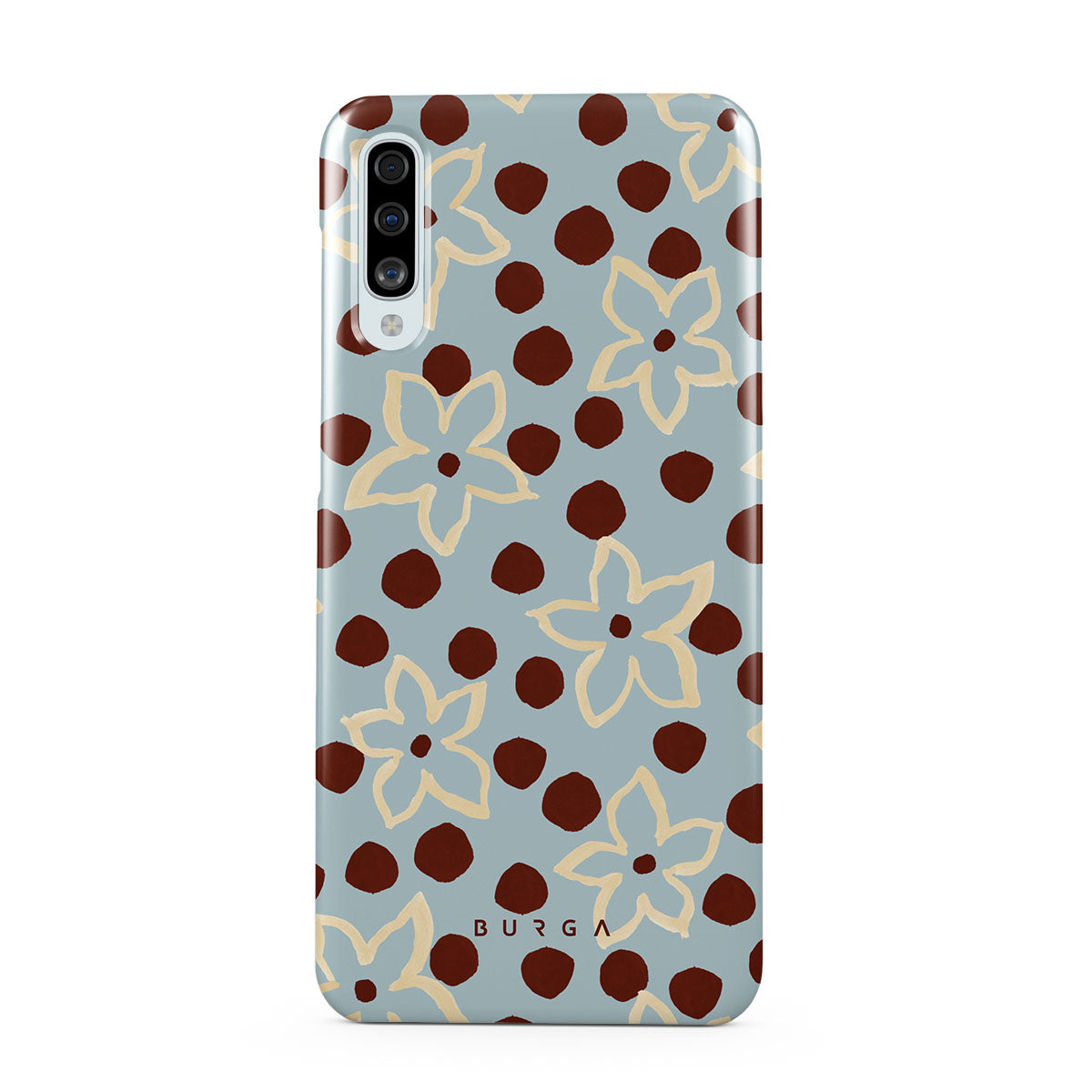The Frutaria Samsung Galaxy A50 phone case design design: retro surf motel wallpaper meets vintage ceramics. The soft florals, earthy dots, and cool-toned palette give major “forgotten seaside town in the ‘70s” energy.