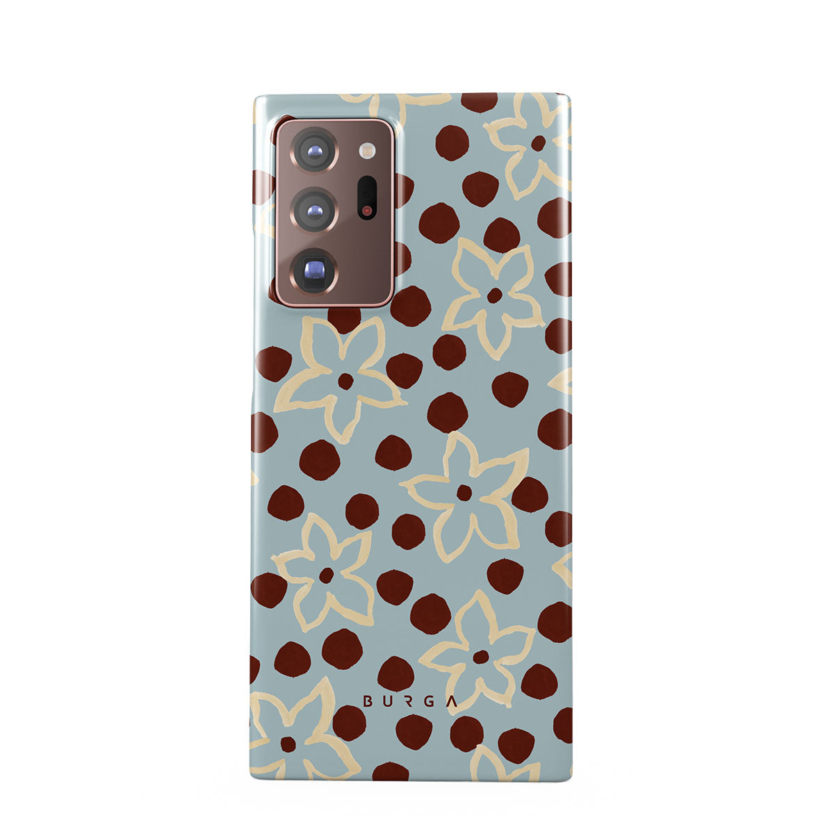 The Frutaria Samsung Galaxy Note 20 Ultra 4G / 5G phone case design design: retro surf motel wallpaper meets vintage ceramics. The soft florals, earthy dots, and cool-toned palette give major “forgotten seaside town in the ‘70s” energy.