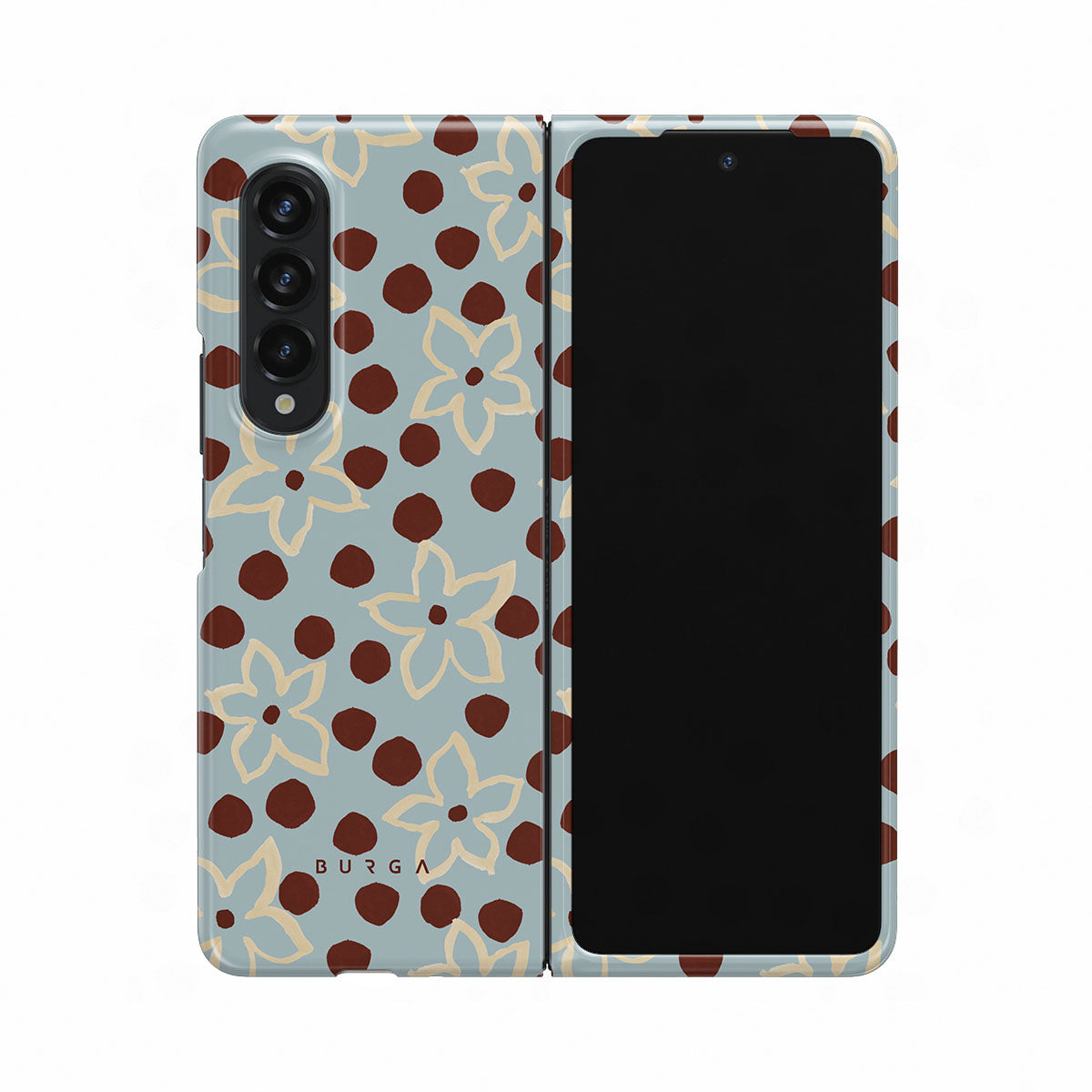 The Frutaria Samsung Galaxy Z Fold 4 phone case design design: retro surf motel wallpaper meets vintage ceramics. The soft florals, earthy dots, and cool-toned palette give major “forgotten seaside town in the ‘70s” energy.