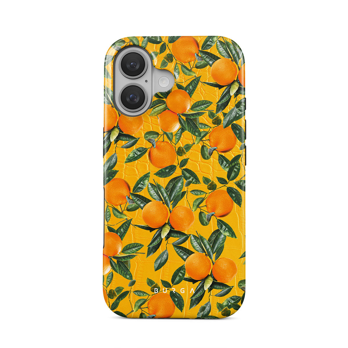 Orange Lemonade iPhone 16 Plus phone case showcases a unique combination of vibrant orange croco design with plenty of mouth-watering oranges on top. With this energetic design, protect your phone and keep your spirits up.