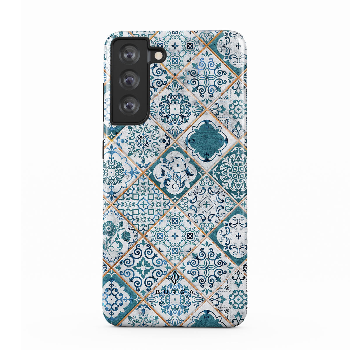 Tropical Oasis Samsung Galaxy S21 FE phone case is inspired by the timeless Moroccan ornaments. Such patterns can be seen all over the fashion industry and always add a touch of exotic. With this popular ornament, you can have a phone case that is both protective and trendy.