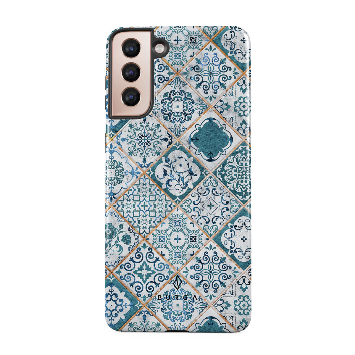 Tropical Oasis Samsung Galaxy S21 Plus phone case is inspired by the timeless Moroccan ornaments. Such patterns can be seen all over the fashion industry and always add a touch of exotic. With this popular ornament, you can have a phone case that is both protective and trendy.