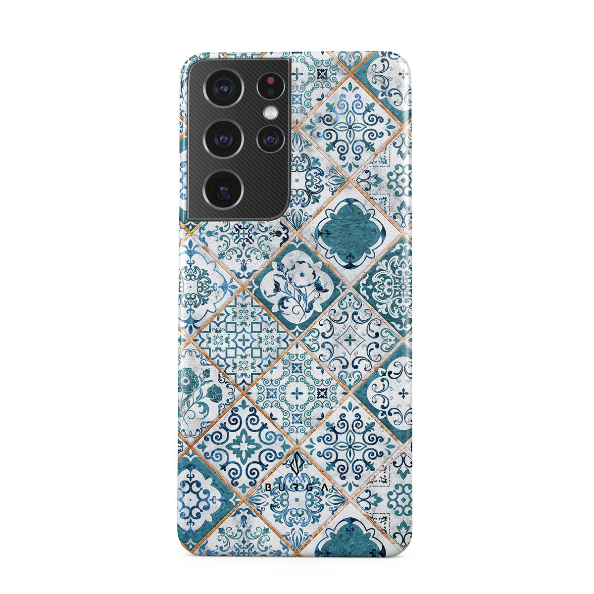 Tropical Oasis Samsung Galaxy S21 Ultra phone case is inspired by the timeless Moroccan ornaments. Such patterns can be seen all over the fashion industry and always add a touch of exotic. With this popular ornament, you can have a phone case that is both protective and trendy.