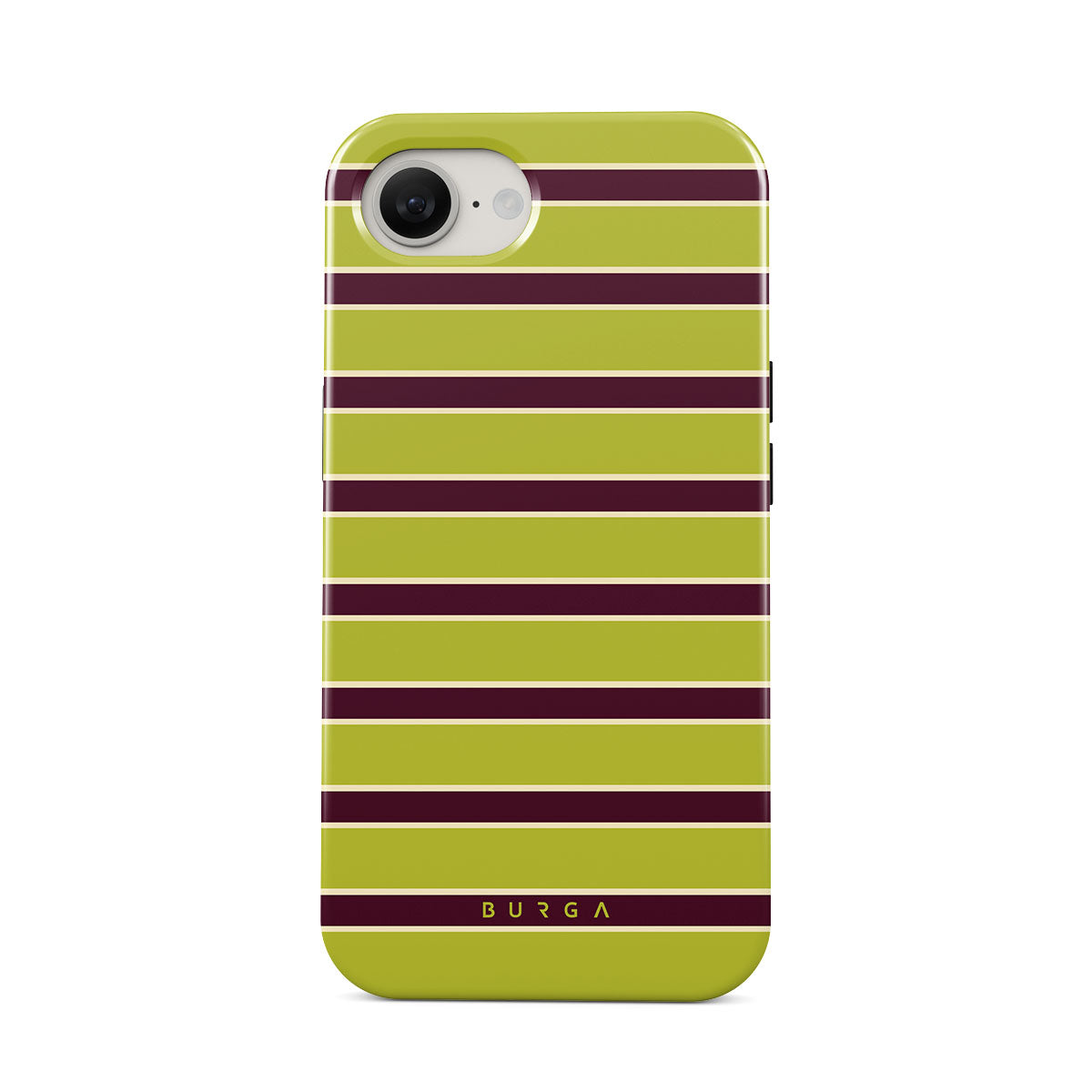 This design features: thick horizontal stripes in lime green and burgundy .