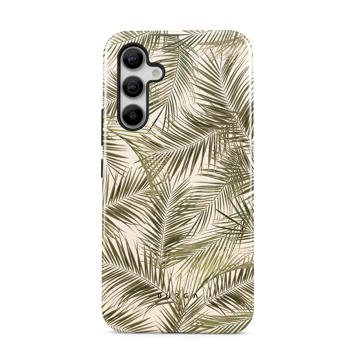Some find happiness in the endless possibilities, and others find joy in the moments of relief. Can it be that you will find your happy place surrounded by palm leaves? Try our unique Samsung Galaxy A54 phone case design with bright palm leaves and add a statement to your style.