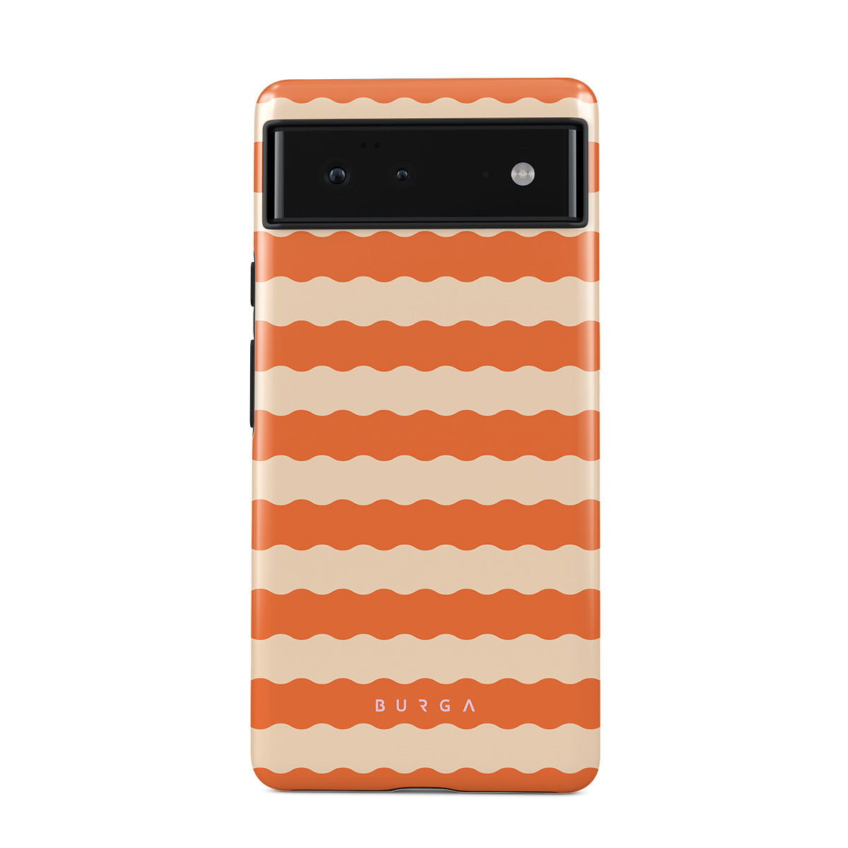 Unleash the tropical heat with the our Papaya design—a sizzling Google Pixel 6 phone case that electrifies with fiery, wavy stripes of juicy papaya orange and smooth, creamy beige. Perfect for trendsetters craving a daring, sun-soaked style.
