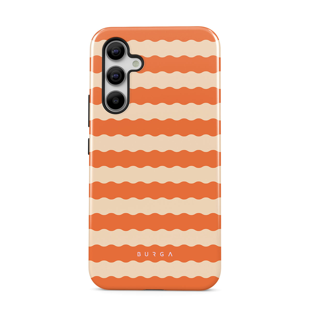 Unleash the tropical heat with the our Papaya design—a sizzling Samsung Galaxy A54 phone case that electrifies with fiery, wavy stripes of juicy papaya orange and smooth, creamy beige. Perfect for trendsetters craving a daring, sun-soaked style.