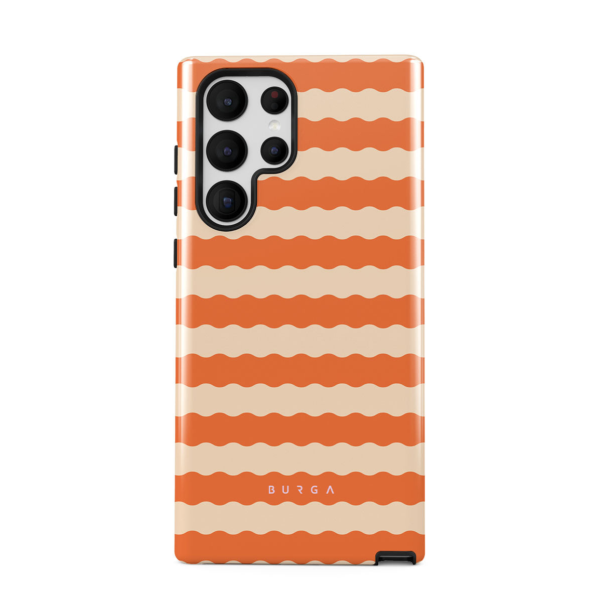 Unleash the tropical heat with the our Papaya design—a sizzling Samsung Galaxy S22 Ultra phone case that electrifies with fiery, wavy stripes of juicy papaya orange and smooth, creamy beige. Perfect for trendsetters craving a daring, sun-soaked style.