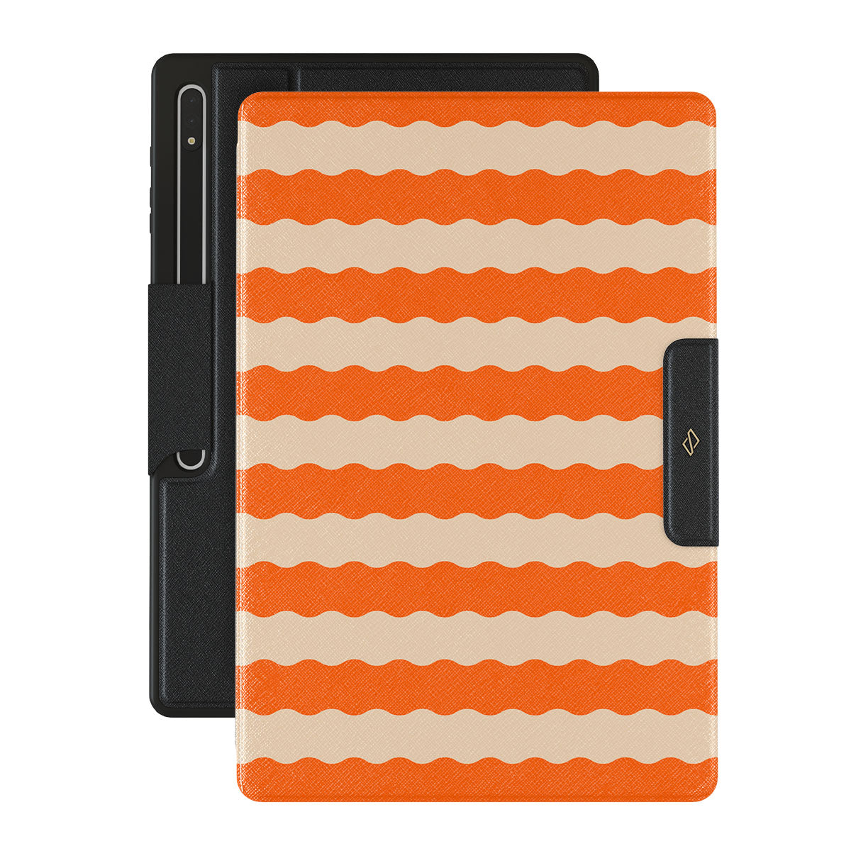 Unleash the tropical heat with the our Papaya design—a sizzling Samsung Galaxy Tab S10 Ultra folio case that electrifies with fiery, wavy stripes of juicy papaya orange and smooth, creamy beige. Perfect for trendsetters craving a daring, sun-soaked style.