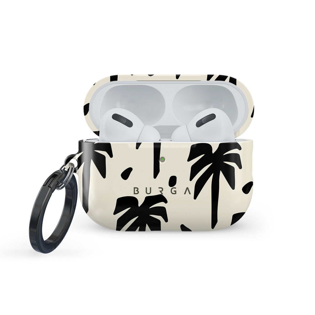 A peaceful haven right at your fingertips. The design contrasts black palm silhouettes against a calming light backdrop. Our Paraíso Apple AirPods Pro 3 case cover is your passport to an everlasting tropical escape.
