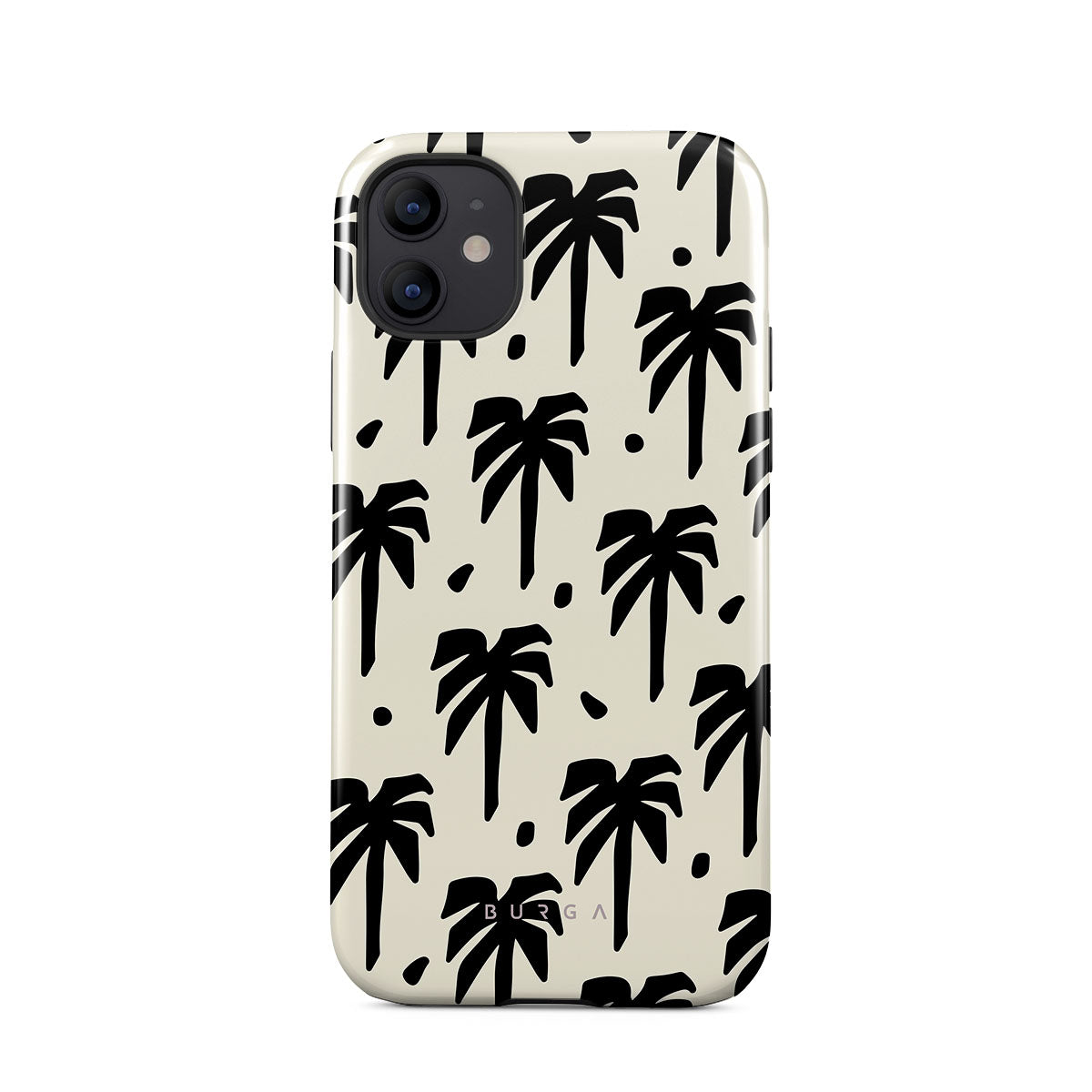 A peaceful haven right at your fingertips. The design contrasts black palm silhouettes against a calming light backdrop. Our Paraíso iPhone 12 phone case is your passport to an everlasting tropical escape.