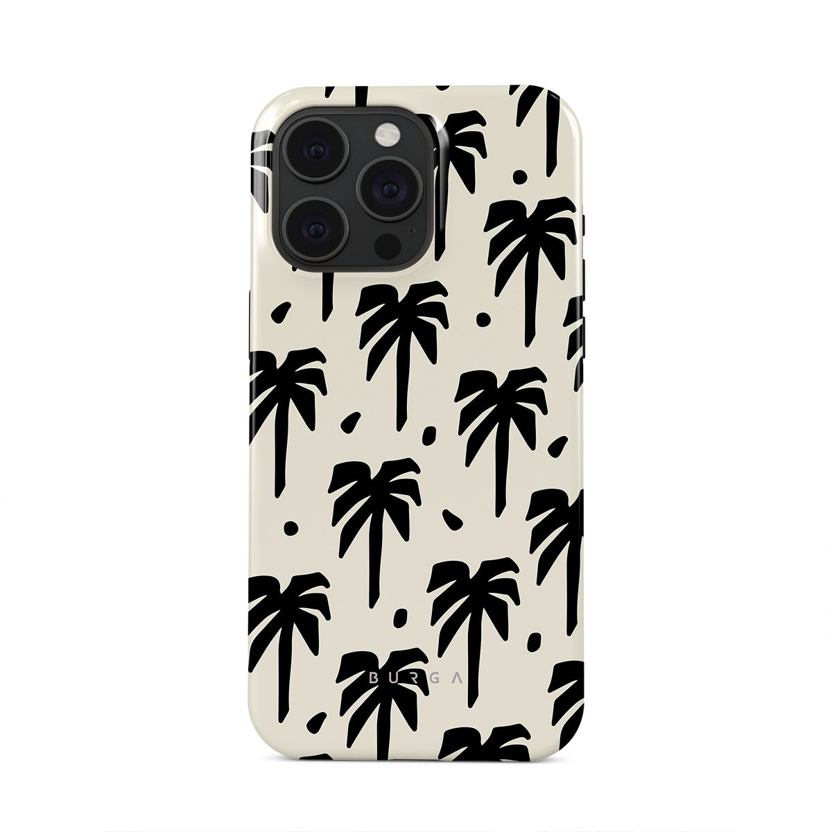 A peaceful haven right at your fingertips. The design contrasts black palm silhouettes against a calming light backdrop. Our Paraíso iPhone 15 Pro phone case is your passport to an everlasting tropical escape.