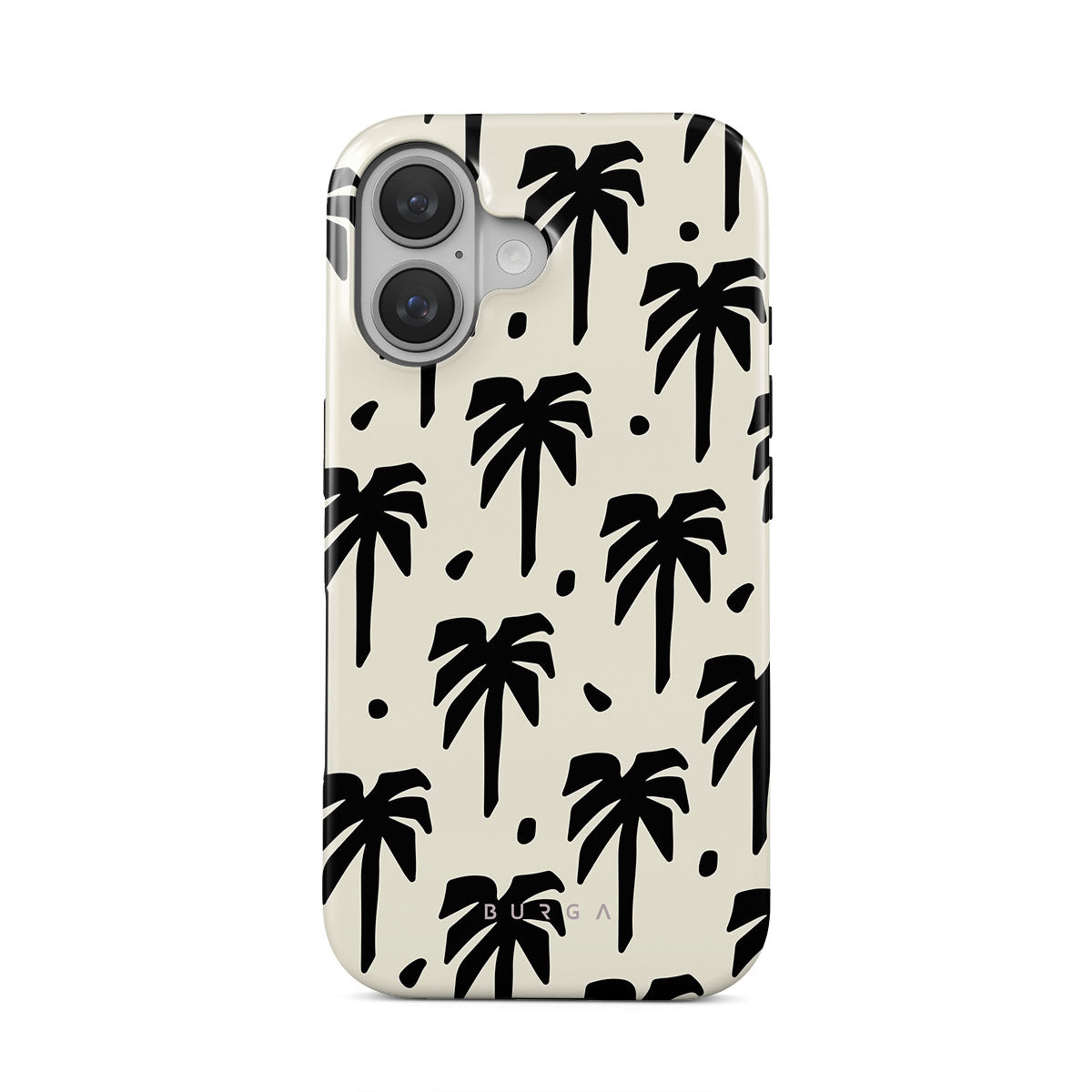 A peaceful haven right at your fingertips. The design contrasts black palm silhouettes against a calming light backdrop. Our Paraíso iPhone 16 Plus phone case is your passport to an everlasting tropical escape.