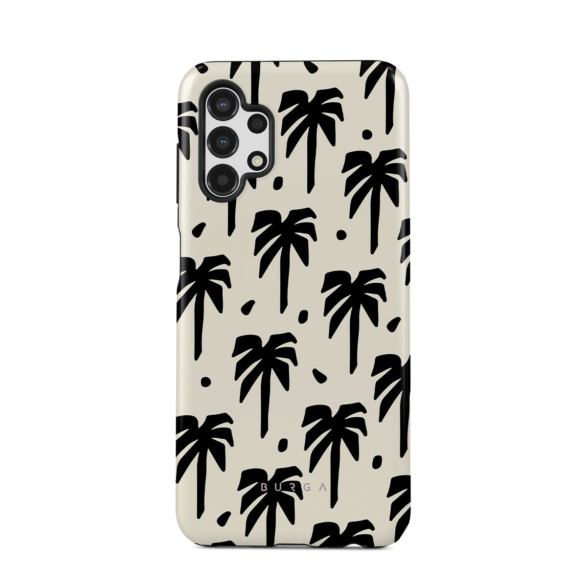 A peaceful haven right at your fingertips. The design contrasts black palm silhouettes against a calming light backdrop. Our Paraíso Samsung Galaxy A13 4G phone case is your passport to an everlasting tropical escape.