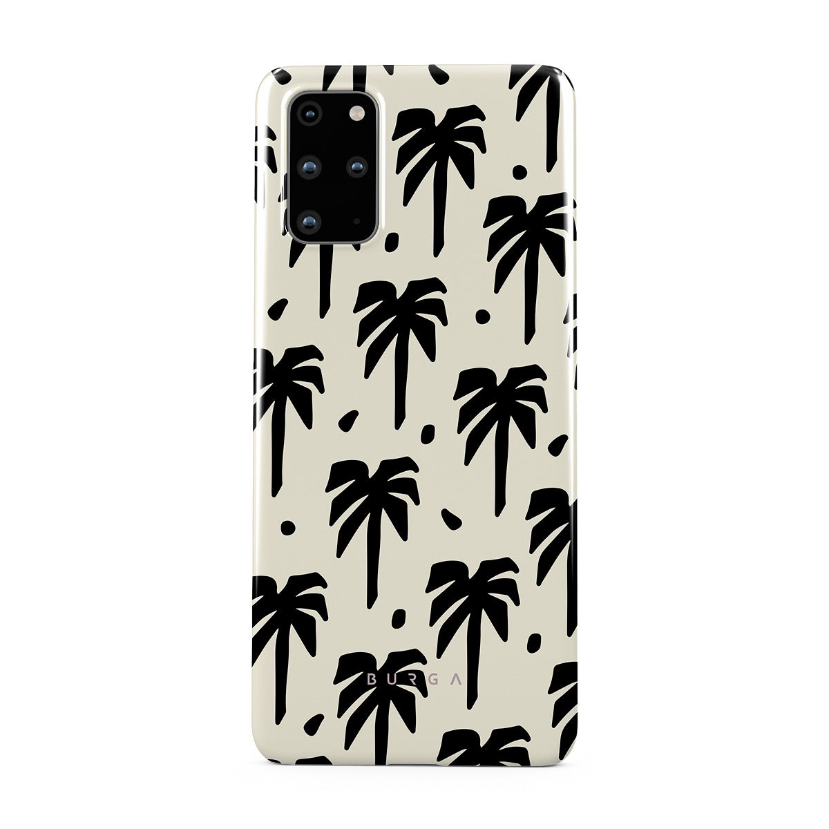 A peaceful haven right at your fingertips. The design contrasts black palm silhouettes against a calming light backdrop. Our Paraíso Samsung Galaxy S20 Plus 4G / 5G phone case is your passport to an everlasting tropical escape.