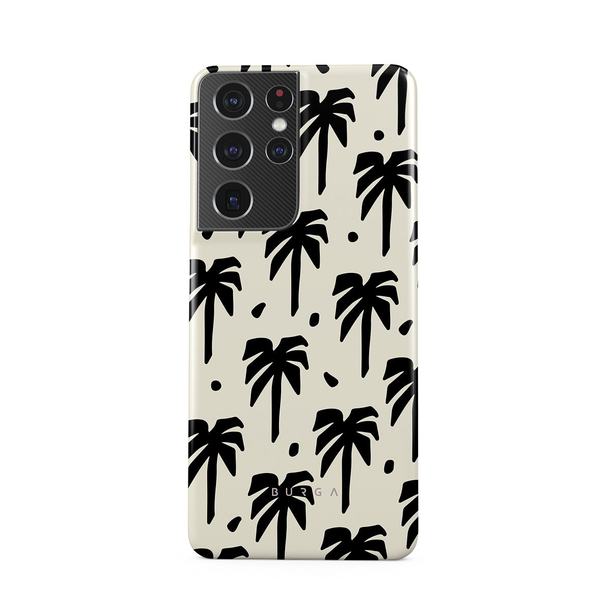 A peaceful haven right at your fingertips. The design contrasts black palm silhouettes against a calming light backdrop. Our Paraíso Samsung Galaxy S21 Ultra phone case is your passport to an everlasting tropical escape.