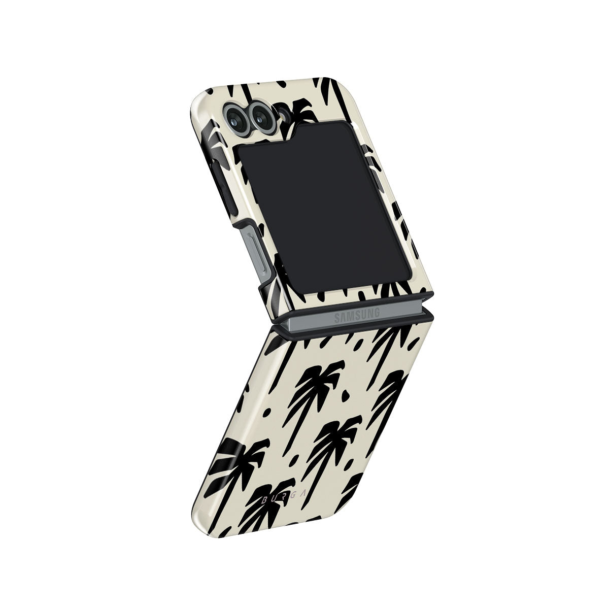 A peaceful haven right at your fingertips. The design contrasts black palm silhouettes against a calming light backdrop. Our Paraíso Samsung Galaxy Z Flip 6 phone case is your passport to an everlasting tropical escape.