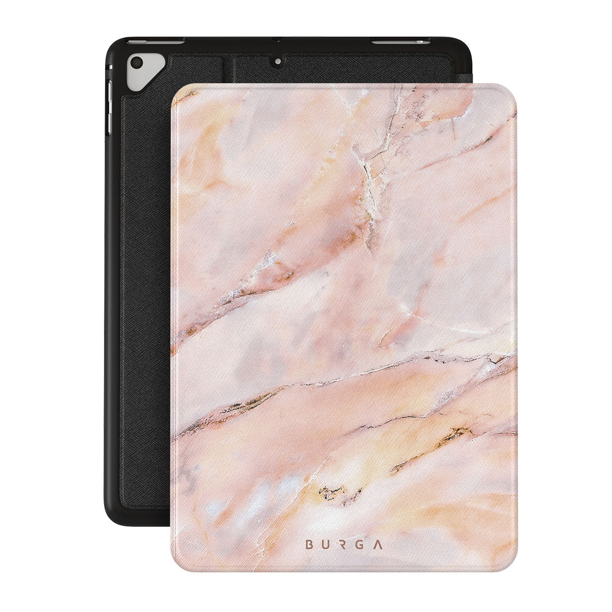 Morning Sunshine iPad 9.7 (6th/5th Gen) folio case features a timeless pastel marble design, inspired by the beauty of a sunrise. Soft hues of pink and orange will add warmth to your style. Keep your iPad protected with sunshine in your pocket.