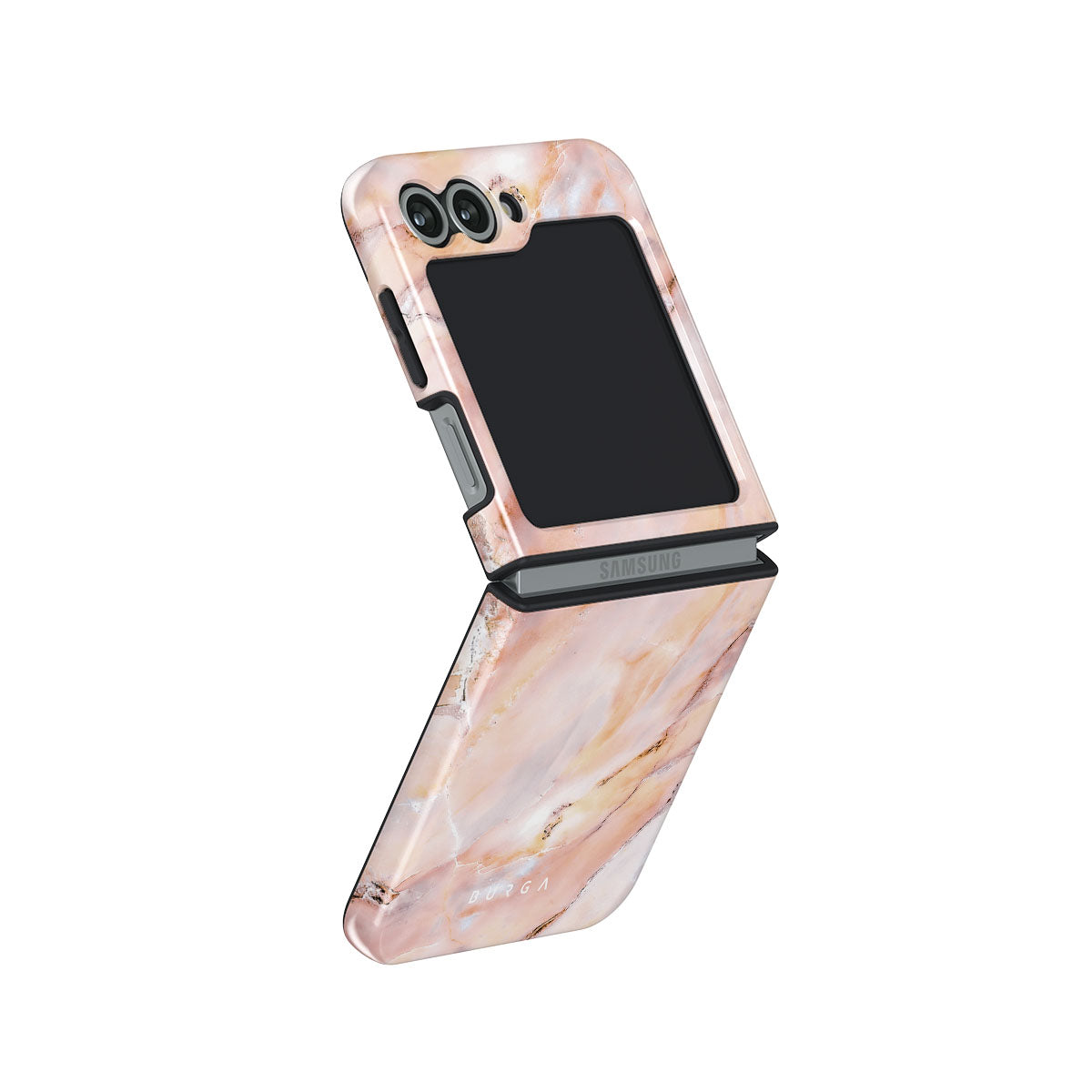 Morning Sunshine Samsung Galaxy Z Flip 6 phone case features a timeless pastel marble design, inspired by the beauty of a sunrise. Soft hues of pink and orange will add warmth to your style. Keep your phone protected with sunshine in your pocket.