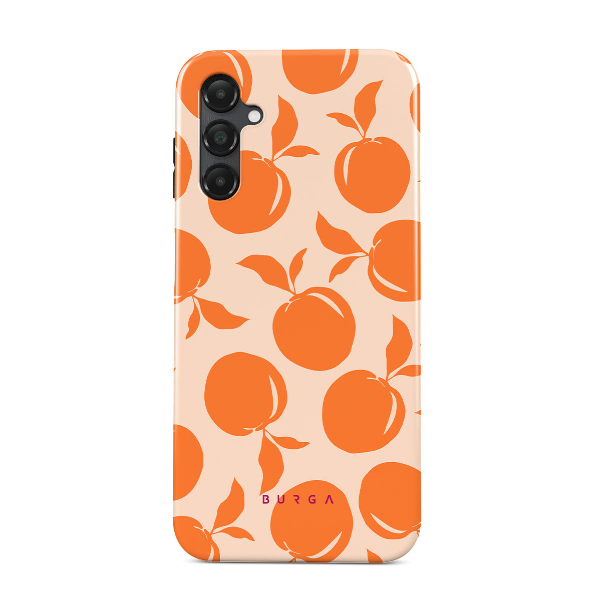 Picture a sun-soaked grove where ripe, juicy peaches glow with a radiant orange vibrance, their succulent aroma filling the warm air. Our Peach Fuzz design infuses your Samsung Galaxy A25 phone case with a lively, sun-kissed charm, perfectly capturing the essence of carefree, joyful summer days.