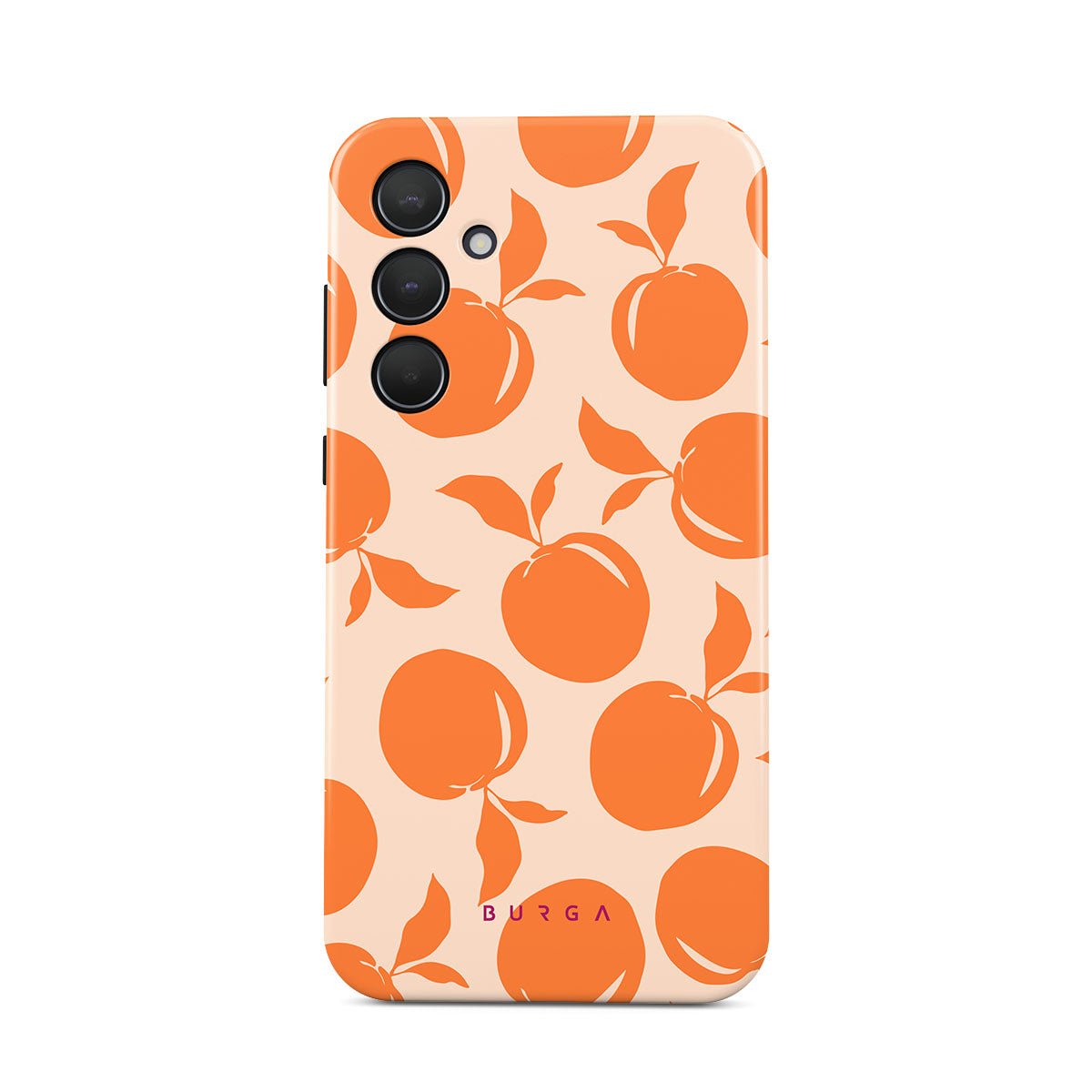 Picture a sun-soaked grove where ripe, juicy peaches glow with a radiant orange vibrance, their succulent aroma filling the warm air. Our Peach Fuzz design infuses your Samsung Galaxy A35 phone case with a lively, sun-kissed charm, perfectly capturing the essence of carefree, joyful summer days.