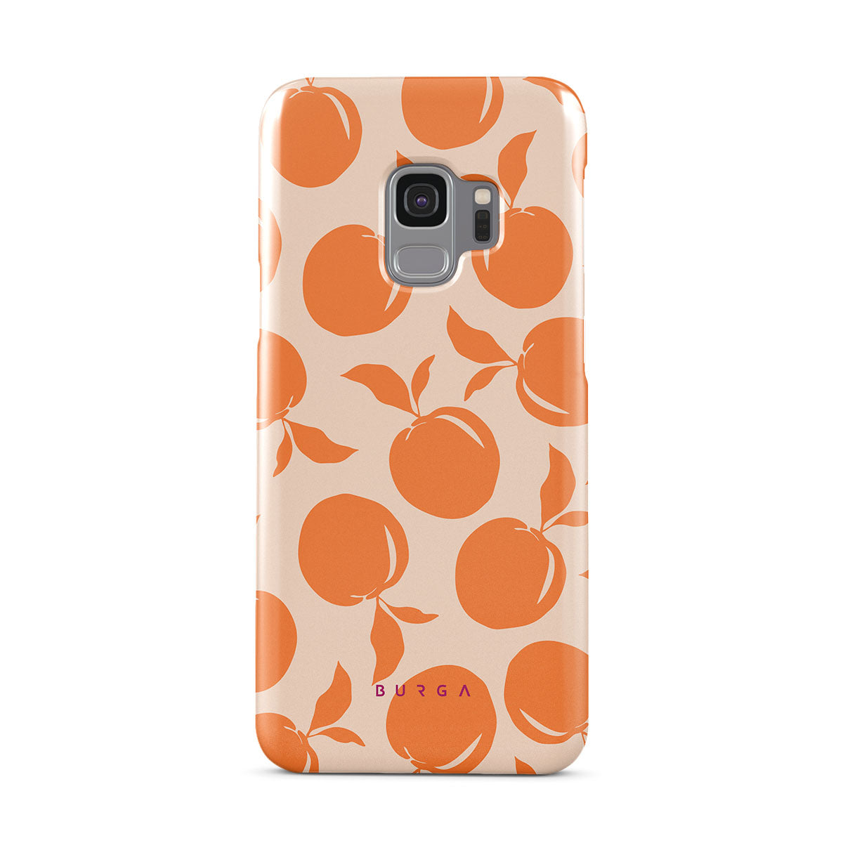 Picture a sun-soaked grove where ripe, juicy peaches glow with a radiant orange vibrance, their succulent aroma filling the warm air. Our Peach Fuzz design infuses your Samsung Galaxy S9 phone case with a lively, sun-kissed charm, perfectly capturing the essence of carefree, joyful summer days.