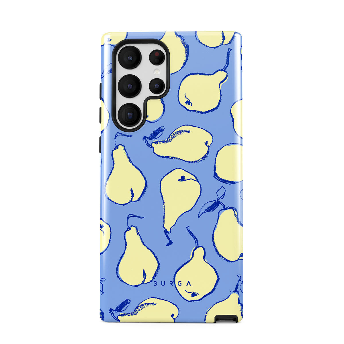 Step into a playful paradise with Pear Crush. Each pear is outlined with a lively, hand-drawn charm. This design brings a playful vibe to your Samsung Galaxy S22 Ultra phone case, perfect for those who love to embrace the lighter, more joyful side of life.