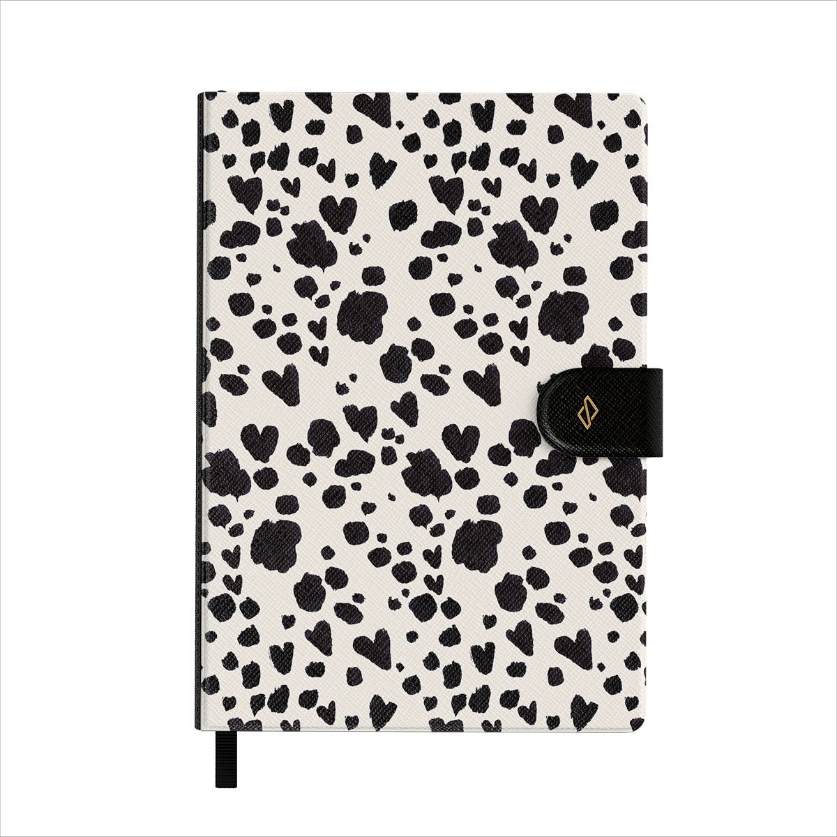 This design features: black and white dalmatian pattern.