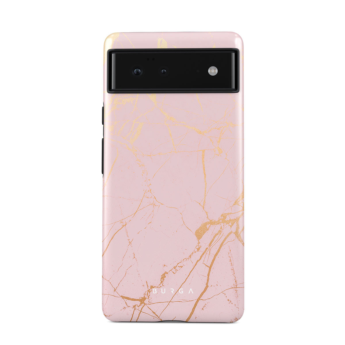 Growing under the beautiful sky and warmed by the rays of the sunshine, when ripped, peach offers you sweetness and softness. This is why our Peachy Gold Google Pixel 6a phone case design adds a bit of golden color to the pink marble dream making a protective phone case both pretty and durable.
