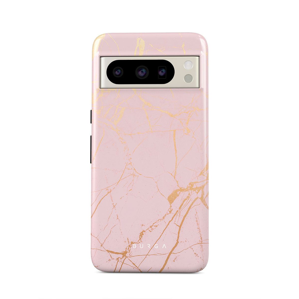 Growing under the beautiful sky and warmed by the rays of the sunshine, when ripped, peach offers you sweetness and softness. This is why our Peachy Gold Google Pixel 8 Pro phone case design adds a bit of golden color to the pink marble dream making a protective phone case both pretty and durable.