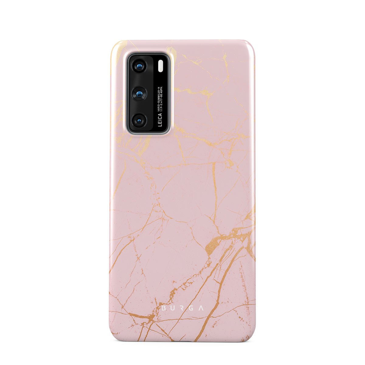 Growing under the beautiful sky and warmed by the rays of the sunshine, when ripped, peach offers you sweetness and softness. This is why our Peachy Gold Huawei P40 phone case design adds a bit of golden color to the pink marble dream making a protective phone case both pretty and durable.
