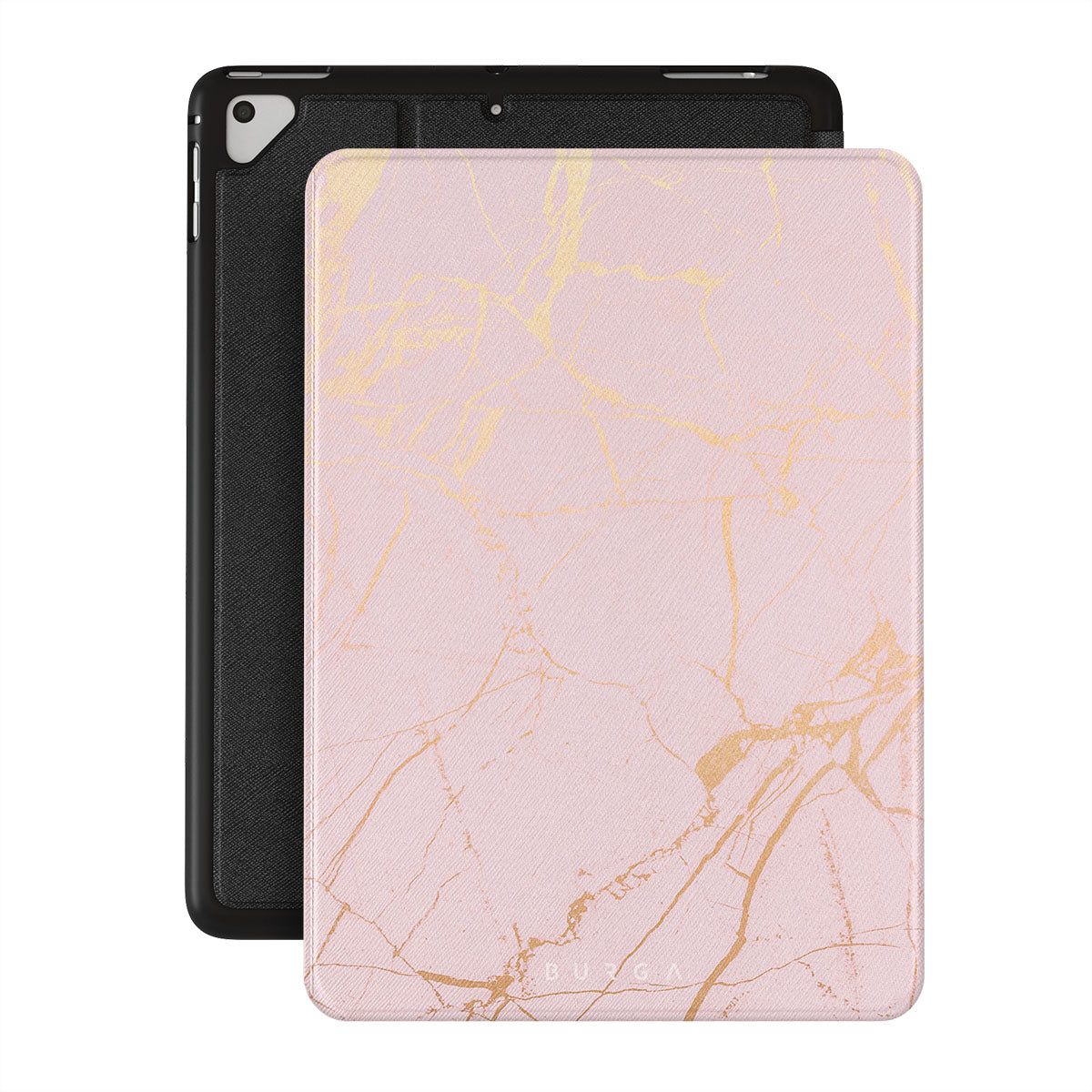Growing under the beautiful sky and warmed by the rays of the sunshine, when ripped, peach offers you sweetness and softness. This is why our Peachy Gold iPad 9.7 (6th/5th Gen) folio case design adds a bit of golden color to the pink marble dream making a protective iPad case cover both pretty and durable.