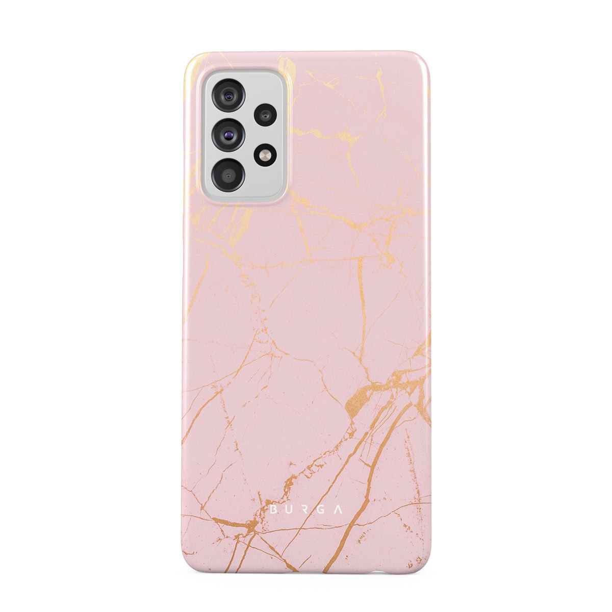Growing under the beautiful sky and warmed by the rays of the sunshine, when ripped, peach offers you sweetness and softness. This is why our Peachy Gold Samsung Galaxy A72 phone case design adds a bit of golden color to the pink marble dream making a protective phone case both pretty and durable.