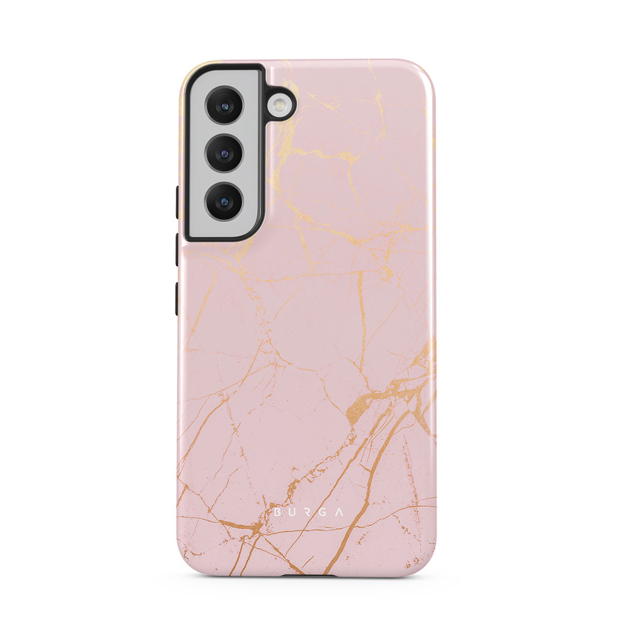 Growing under the beautiful sky and warmed by the rays of the sunshine, when ripped, peach offers you sweetness and softness. This is why our Peachy Gold Samsung Galaxy S22 Plus phone case design adds a bit of golden color to the pink marble dream making a protective phone case both pretty and durable.