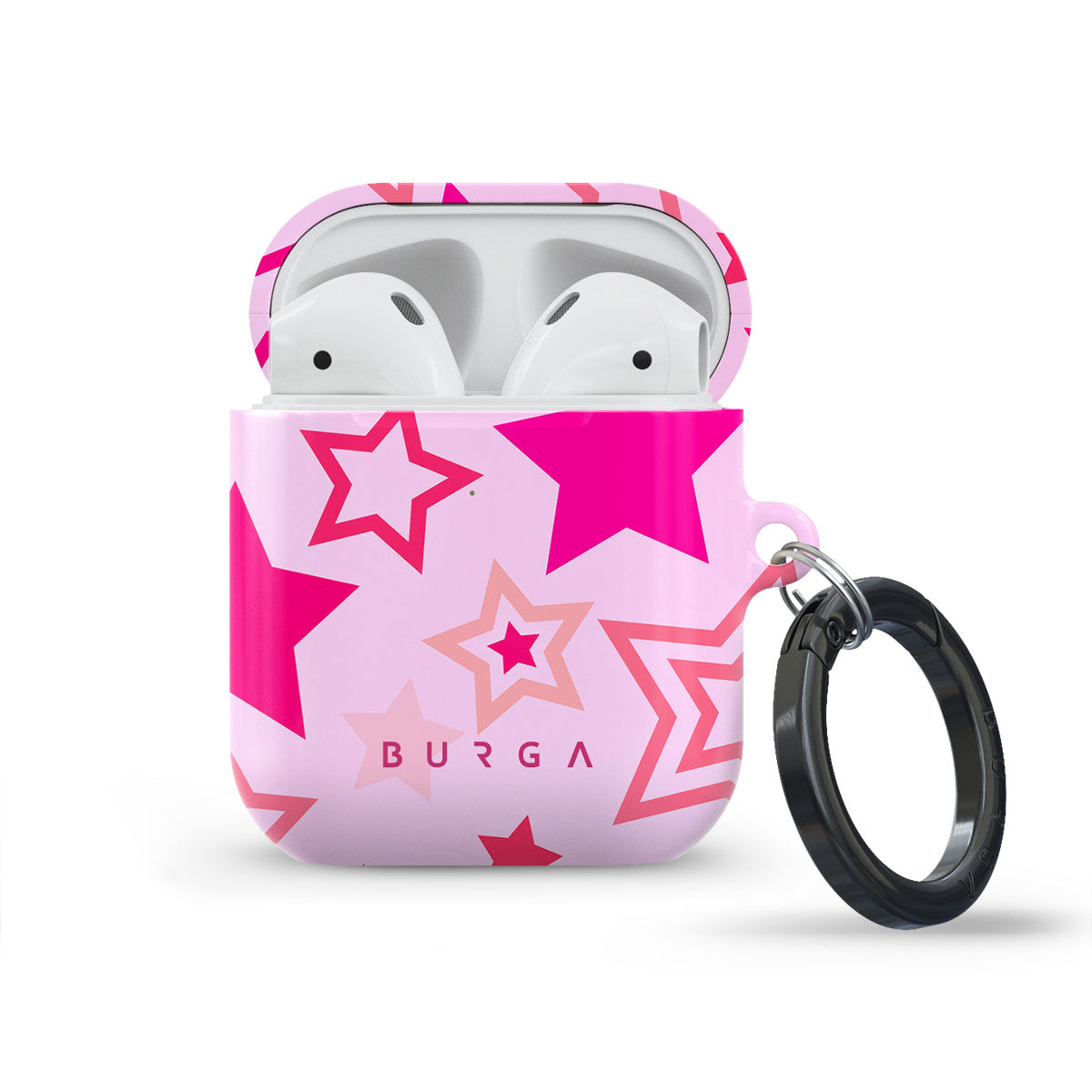 Buckle up for a starry ride, and let's twirl under the Plastic Sky. Neon stars shimmering across a cheeky rose-tinted galaxy create a playful space-disco atmosphere. Be the center of the universe with our Plastic Sky Apple Airpod Generation 1 & 2 case cover!