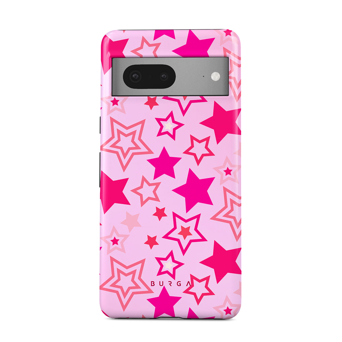 Buckle up for a starry ride, and let's twirl under the Plastic Sky. Neon stars shimmering across a cheeky rose-tinted galaxy create a playful space-disco atmosphere. Be the center of the universe with our Plastic Sky Google Pixel 7a phone case!
