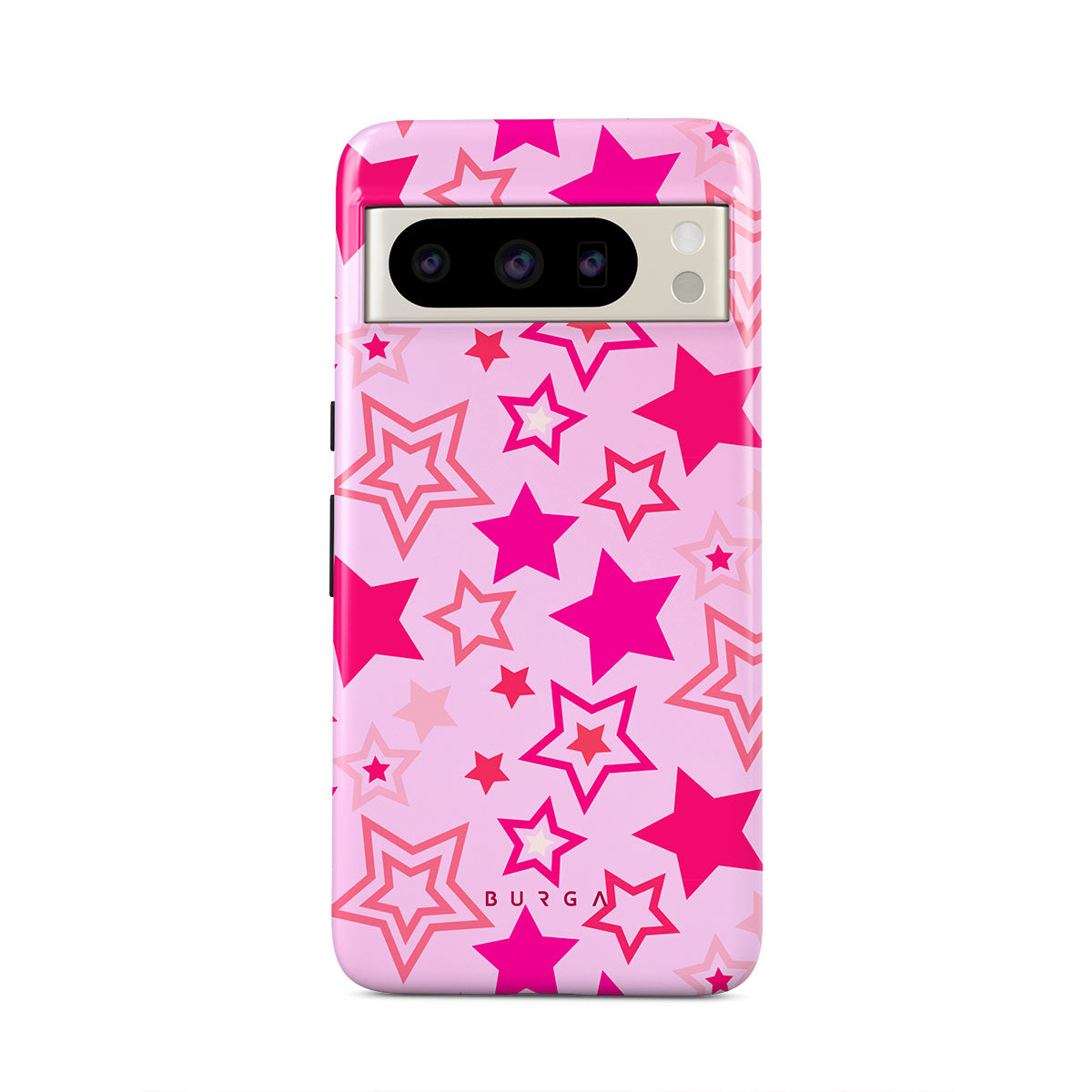 Buckle up for a starry ride, and let's twirl under the Plastic Sky. Neon stars shimmering across a cheeky rose-tinted galaxy create a playful space-disco atmosphere. Be the center of the universe with our Plastic Sky Google Pixel 8 Pro phone case!