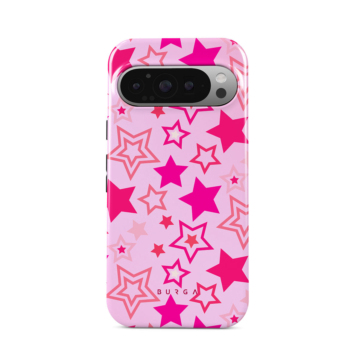 Buckle up for a starry ride, and let's twirl under the Plastic Sky. Neon stars shimmering across a cheeky rose-tinted galaxy create a playful space-disco atmosphere. Be the center of the universe with our Plastic Sky Google Pixel 9 Pro XL phone case!