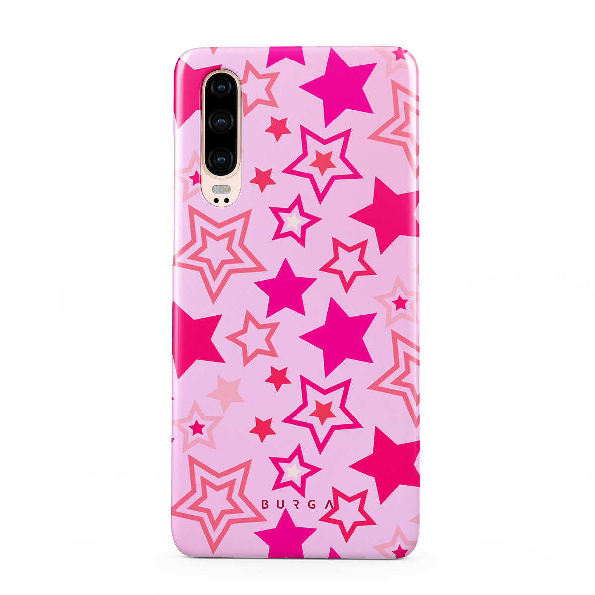 Buckle up for a starry ride, and let's twirl under the Plastic Sky. Neon stars shimmering across a cheeky rose-tinted galaxy create a playful space-disco atmosphere. Be the center of the universe with our Plastic Sky Huawei P30 phone case!