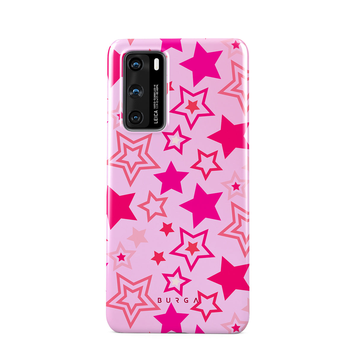 Buckle up for a starry ride, and let's twirl under the Plastic Sky. Neon stars shimmering across a cheeky rose-tinted galaxy create a playful space-disco atmosphere. Be the center of the universe with our Plastic Sky Huawei P40 phone case!